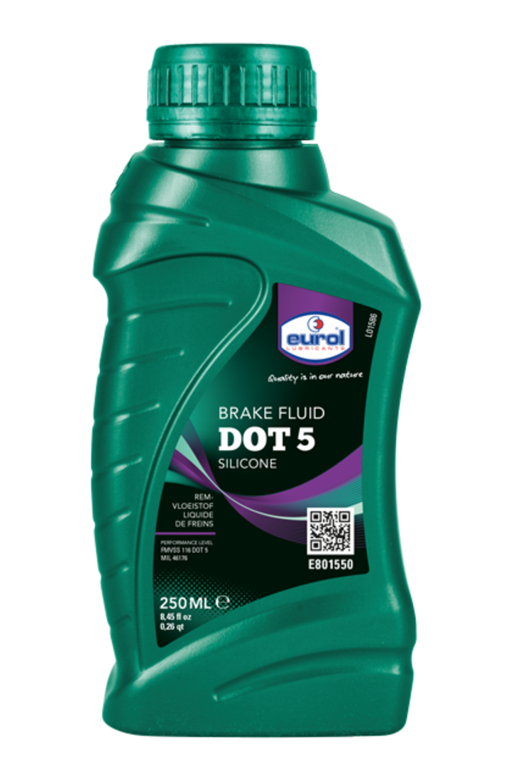 Eurol Brake Fluid DOT 5 Silic is een hoogwaardige siliconen remvloeistof met een breed temperatuurbereik en betrouwbare prestaties onder uiteenlopende omstandigheden. De vloeistof garandeert een optimale werking bij lage temperaturen en heeft bovendien een lage toxiciteit.